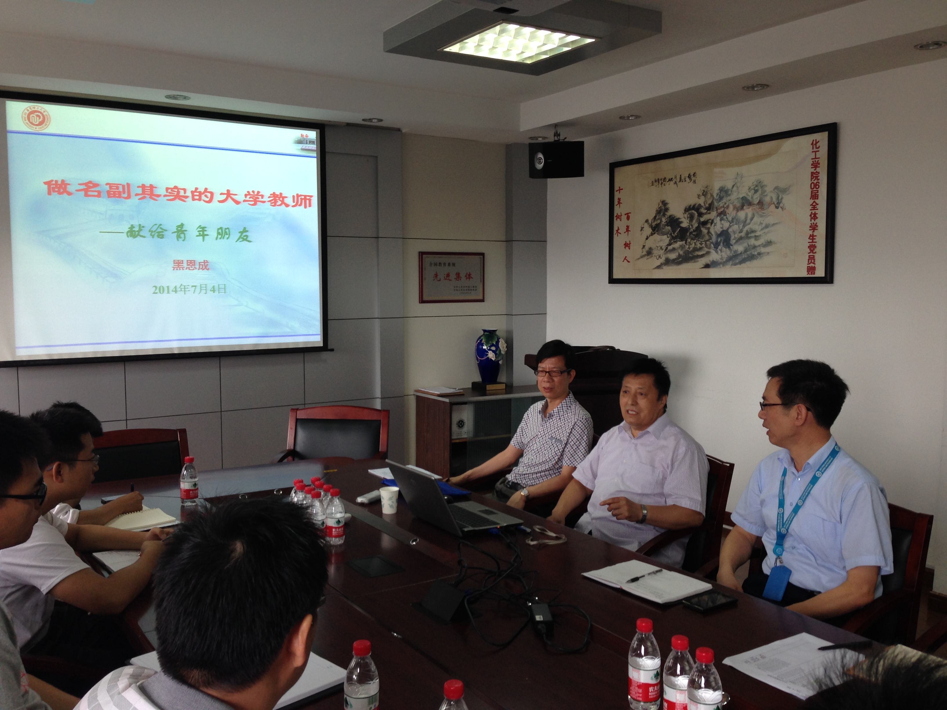 会议的主要内容是黑恩成教授关于《做名副其实大学教师》的专题演讲。黑老师作为第一会所