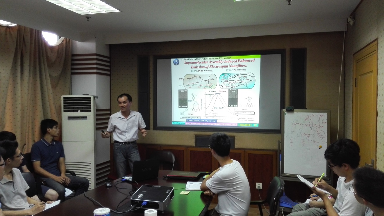 上海市多相结构材料化学工程重点实验室(筹)邀请,作了题“Advances in Supramolecular Materials-From Precisely Self-assembled Nanostructure to Optoelectronic and Biomedical Application” 的学术讲座。