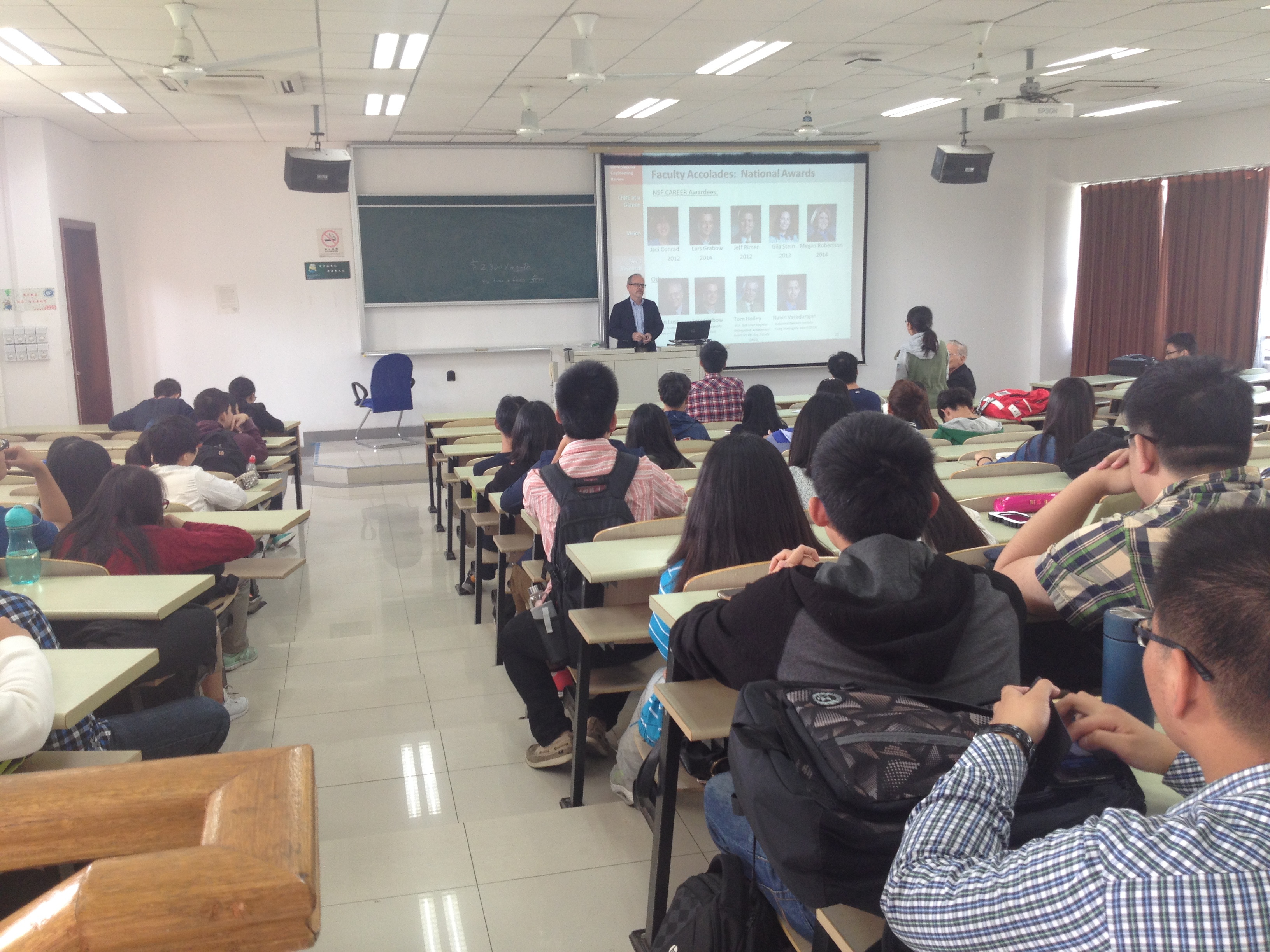 见面会上,Michael教授首先向大家介绍了休斯顿大学的概况,并热切欢迎学生们前往休斯顿大学学习交流。接着,Michael教授详细介绍了其实验室的研究方向并耐心解答学生们关于该项目以及其研究方向的问题。
