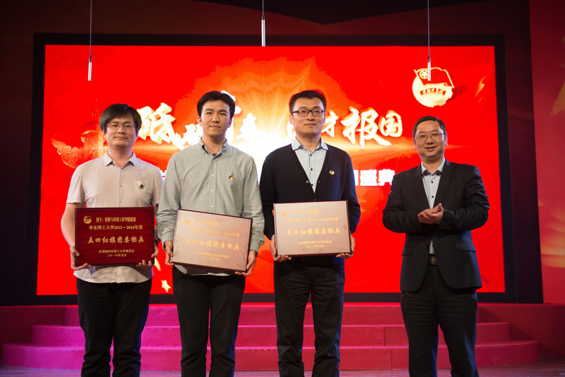 校党委副书记宋来为获得“五四红旗团委标兵”的单位颁奖。