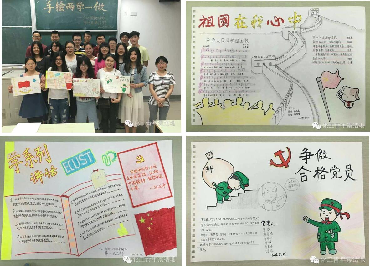 2013级本科生第一党支部在奉贤校区D教408开展了“‘两学一做’之我手绘我心”的主题组织生活。党员们以4-6人为一组,分成四组,分别完成了“学党章党规、学系列讲话,做合格党员”“弘扬爱国主义”等主题的手绘党报。两个小时的“学”与“画”,四个小组都顺利完成了自己手绘报,并在支部内进行了展示与讲解。韩宇晴和孙晶莹等同学完成的作品得到了大家的一致肯定。