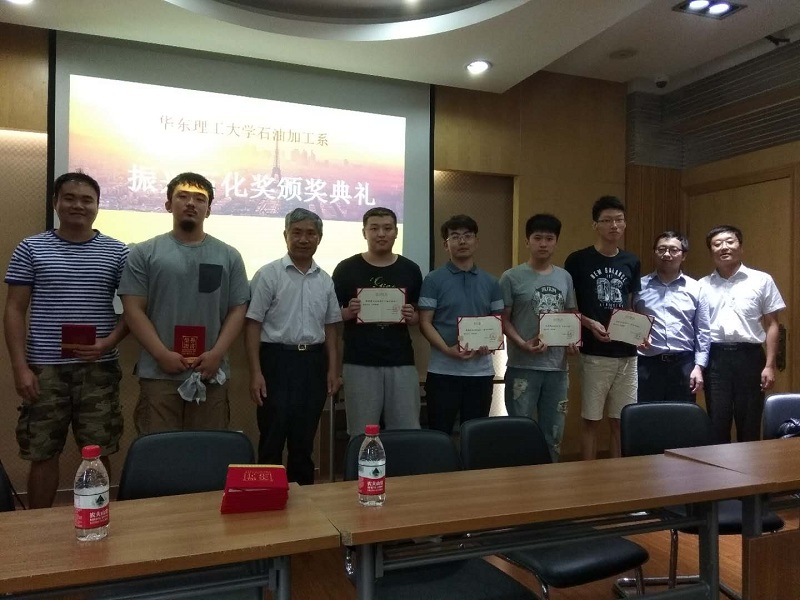 “振兴石化奖”由石油加工系毕业校友捐资设立,用于奖励从本系毕业后从事石化行业工作的学生,鼓励华理学子传承拓展,毕业后进入石化及相关企业,走向国民经济的主战场,服务国家需求。徐心茹教授首先介绍了“振兴石化奖”的设立背景与初衷,并代表石油加工系宣布了2018年“振兴石化奖”获奖名单,沈本贤教授、赵基钢与杨敬一老师为今年毕业进入中石化、中石油、上海惠生、宁波万华等石化企业的毕业生颁发了荣誉证书和奖学金。接着,三个毕业班代表做了四年来的PPT汇报,总结了大学四年以来学习与生活情况,与会学生们积极发言,分享了他们找工作的经历以及社会上对母校及石加系的高度认可,在充满自豪感的同时也决心勤奋工作为母校争光。同学们纷纷感谢四年来第一会所