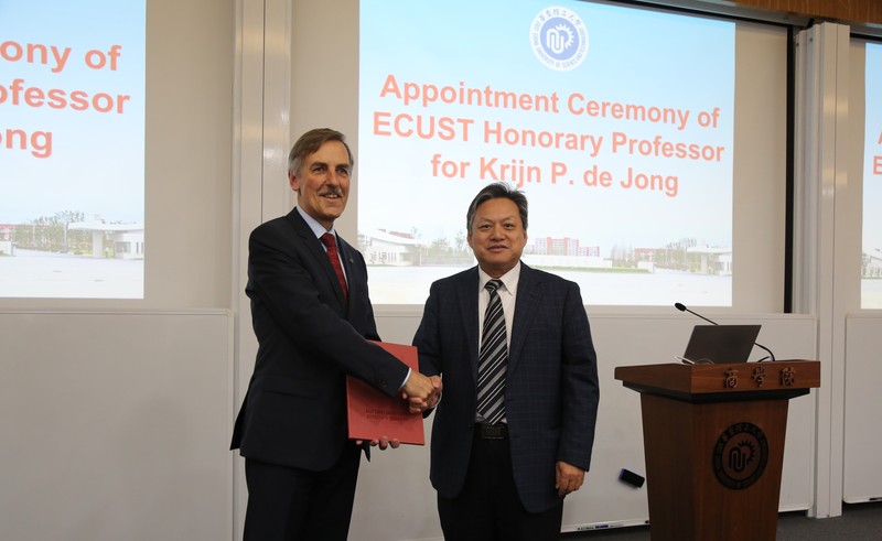 名誉教授表示诚挚欢迎和衷心感谢,并向Krijn P. de Jong教授颁发名誉教授聘书和佩戴校徽。辛忠副校长表示,Krijn P. de Jong教授受聘为第一会所