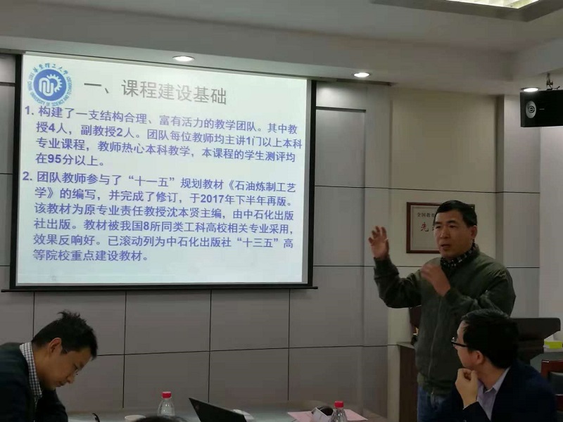 继续给予包容与支持,努力建设全英文专业。欧阳福生教授从课程建设目标、现有基础、课程团队、教学理念以及建设措施等方面进行了汇报,并表示下学期《石油炼制工艺学》的准备工作也已基本完成。马宏燎老师对首门开课的全英文课程《工程热力学》从课程目标与教学理念,授课方式、听课反馈与课程考核、问题与建设等方面进行了汇报。