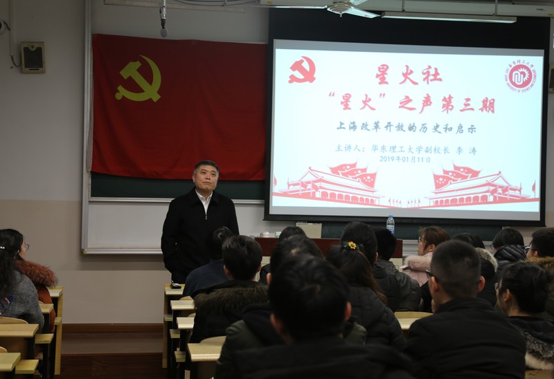 副校长李涛以《上海改革开放启示录》为题,给研究生党员骨干全面介绍了上海市改革开放的历史脉络,为同学们梳理出一幅“上海——时代中奋进”的蓬勃图景,给大家带来了关于学习领会海派历史中艰苦创业,曲折发展,辉煌成就的精彩一课。第一会所