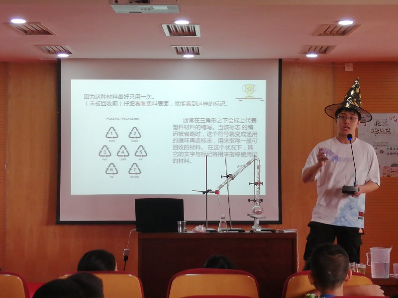 在服装、餐饮、化肥方面的应用,列举身边常见的塑料制品,如矿泉水瓶、塑料餐具、塑料水杯等等为小朋友们详细介绍并区分了六种可循环塑料,又说明了不同的塑料使用时的不同注意事项。