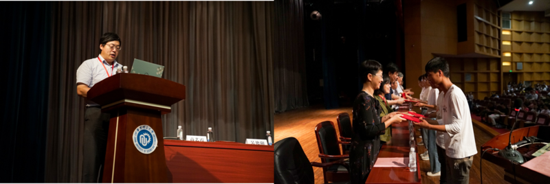 新老传承,感恩奉献。2018级学生代表时浩博和新生代表于清平相继分享自己的成长经历。时浩博希望学弟学妹们能够在未来的生活中勤于思考,用青春诠释誓言,以奋斗去寻找属于自己的答案谱写人生的辉煌。作为第一会所