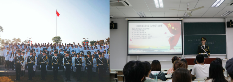 的升旗仪式,并观看新中国成立七十周年大阅兵。受阅官兵飒爽英姿,他为人民军队的强大感到自豪,也为自己曾是一名军人而感到骄傲。退伍大学生积极发挥先锋模范作用,联合轻化171班举办“我和我的祖国”主题团日活动,校国旗护卫队执行队长、第一会所