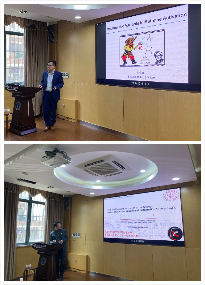 邀请吉林大学李吉来教授和上海科技大学杨永研究员举办学术前沿讲座。在“碳达峰、碳中和”战略目标下,研究生如何在科研学习中紧密围绕低碳烃资源的绿色催化转化与高效利用国家重大战略需求,两位老师给出了甲烷转化领域学科最前沿解读,并鼓励青年教师和研究生抢抓机遇,敢于创新,勇于开拓新方向,做出更多从0到1的原创性成果。