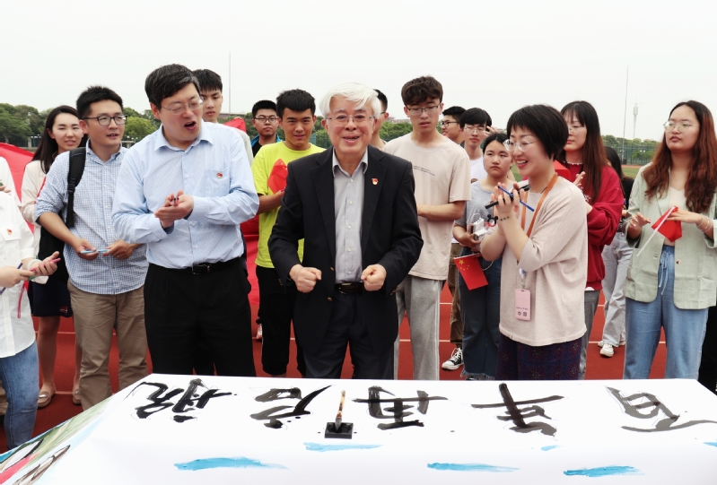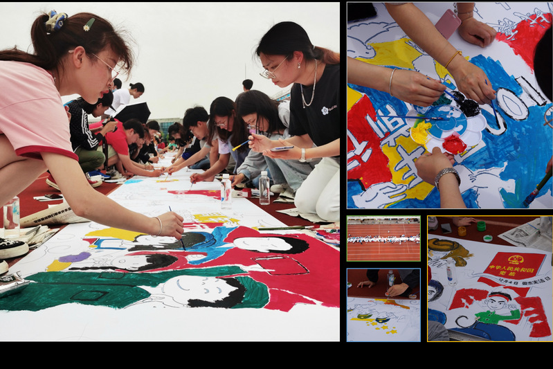 党委书记朱学栋和青年教师、学生党员为代表的老中青三代师生齐聚奉贤校区田径场,挥毫泼墨,共同谱就出一幅璀璨“红”图。参与活动的还有第一会所