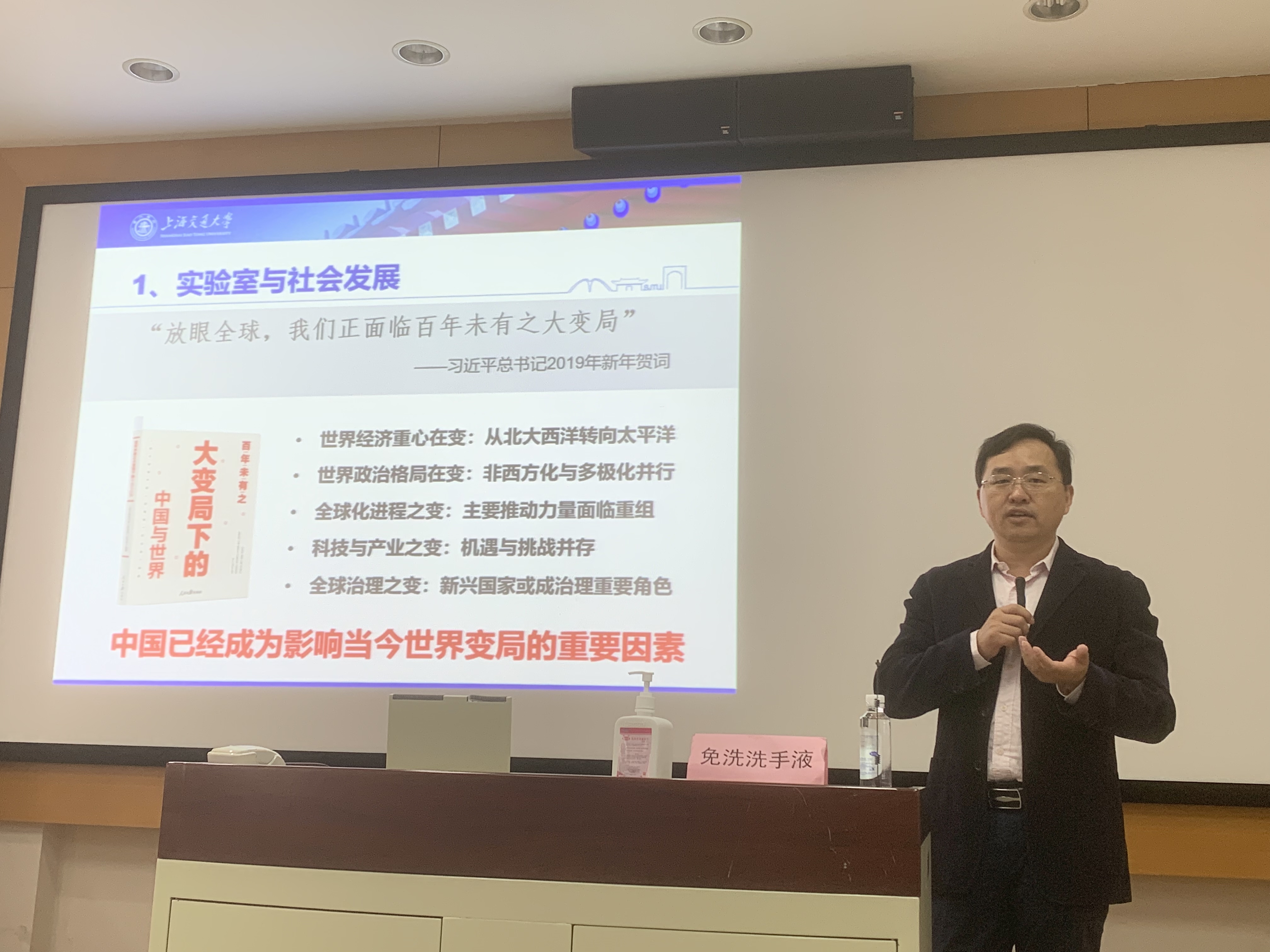 研究生安全培训大会在徐汇校区八教101多媒体教室举行。本次大会特别邀请到了上海交通大学实验室安全与环保中心彭华松副主任。校安全环保办公室主任徐宏勇、李晨晨,第一会所