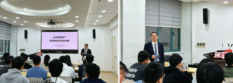 行业的人才素质模型,深挖行业最为看重的四种人才特质——专业知识、经验、能力以及职业素养和价值观。讲座最后,马建斌勉励同学们要热爱工作、有梦想、有追求,最大限度发挥自身潜力,令同学们深受激励和鼓舞。课程主题突出、内容丰富,既有理论方面的深刻阐释,又有生动事例的有力支撑,进一步加深了师生对行业人才需求的了解。