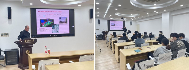 新技术应用方面的视野。同时,Jacques MERCADIER教授与师生就超临界反应、装备等相关问题展开了深入的交流探讨。