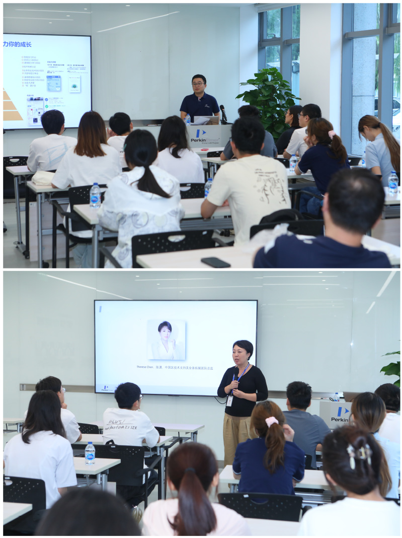 在职业发展讲座部分,珀金埃尔默首席人力资源伙伴朱晨先生与中国区技术支持及业务拓展团队总监陈潇女士先后分享了自己的职场经验和职业规划建议,鼓励同学们勇于追求自己的梦想,并就如何更好地规划个人职业生涯提出了宝贵的见解。