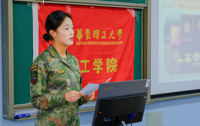 随后,2024级本科生李箐琳分享了她的军旅生涯和参加“9•3”阅兵的珍贵经历,讲述了在部队锤炼意志、磨炼本领的日日夜夜。她的经历生动诠释了新时代中国军人的忠诚与担当,激励着广大青年学子将青春奋斗融入强国兴军的伟大征程。在互动交流环节,同学们踊跃提问,现场气氛热烈。