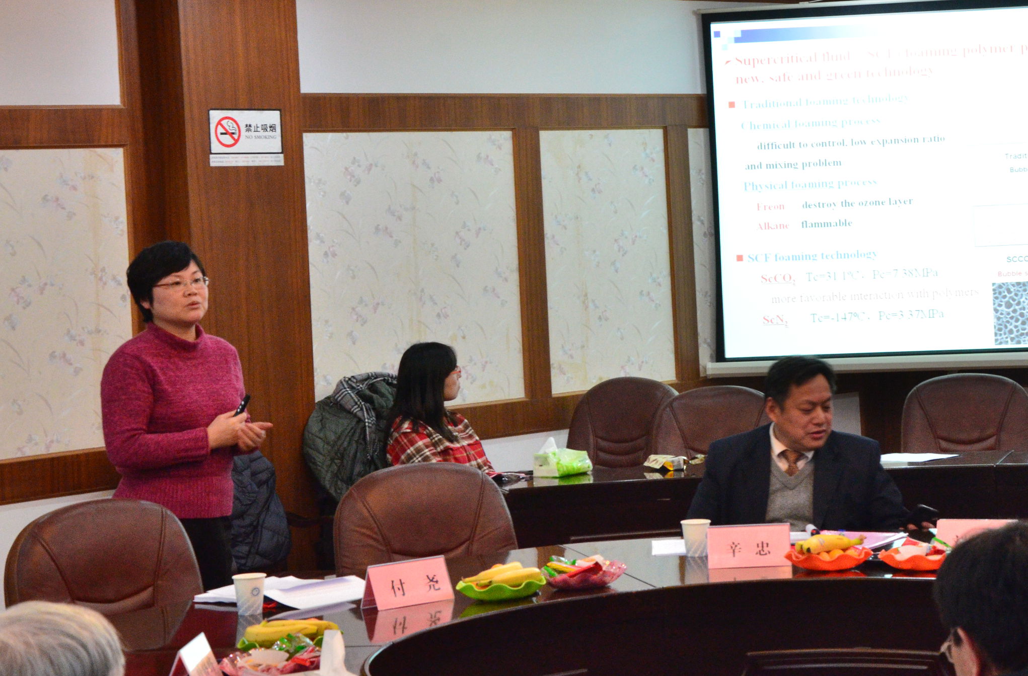 近年来国家级、省部级科研基地的发展情况,并向与会委员颁发学术委员会聘书。重点实验室主任辛忠教授做实验室规划工作报告,汇报了实验室科研规划、人才队伍等方面情况,并介绍了实验室发展思路。实验室赵玲教授、刘柏平教授分别做了“CO2发泡聚合物复合材料过程中的多尺度传递行为”和“聚烯烃产品工程-实验与多尺度模拟研究进展”的学术报告。