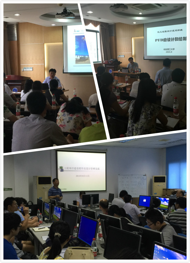 设计系统知识培训。培训内容设置饱满充实,从工程项目的立项、可研报告、初步设计、施工图设计等介绍,到车间设备布置以及工厂厂区总图布置,从设计过程中的PFD、PID软件应用到工程项目中的安全、环保和技术经济评价,内容全面、新颖并联系实际,极大地吸引了培训学员的参与热情。在讲座后期设置的提问讨论环节,学员与专家互动热烈。