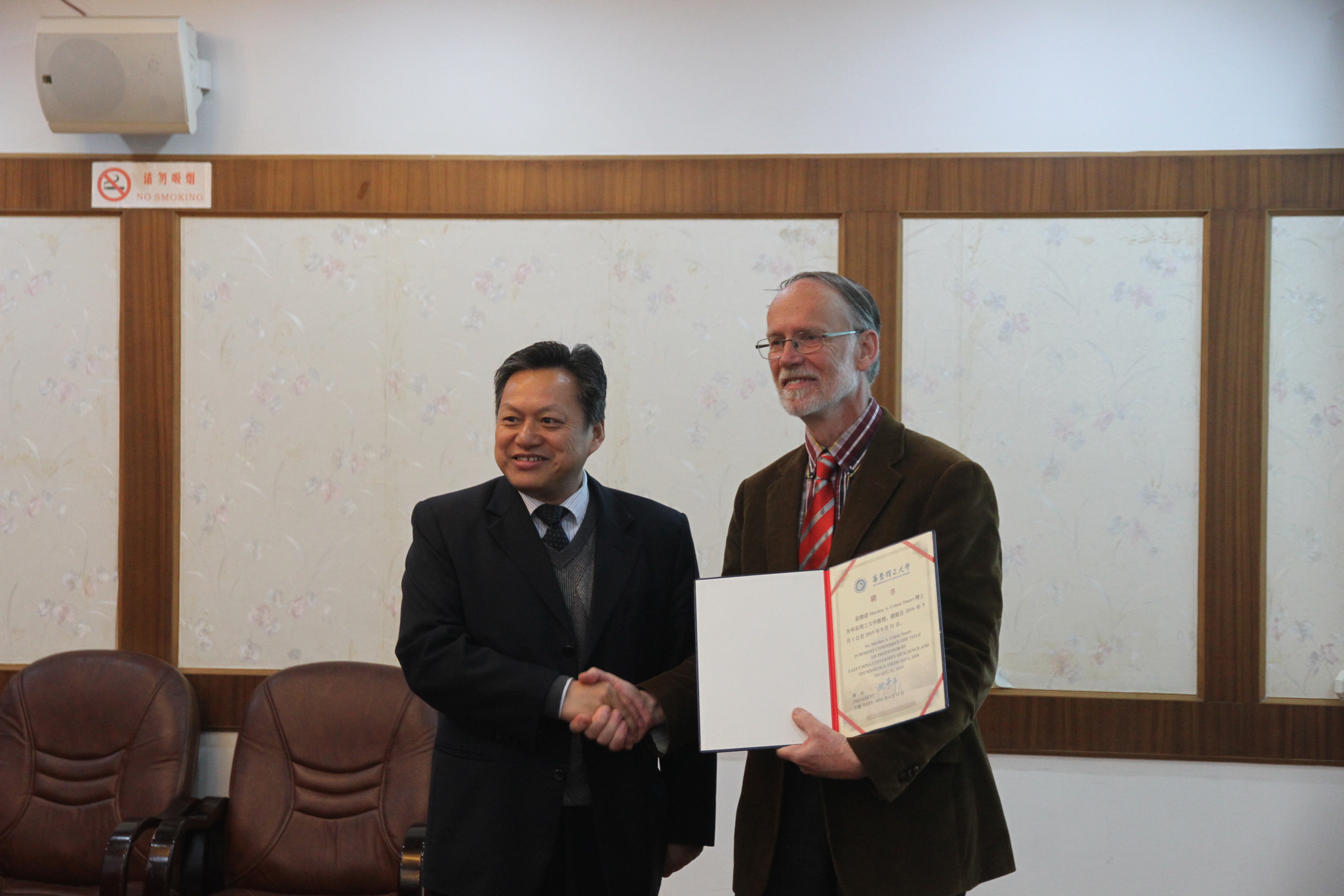 随后,赵玲院长与Martien A Cohen Stuart院士共同签署了聘用合同。辛忠副校长热烈祝贺Martien A Cohen Stuart院士成为第一会所