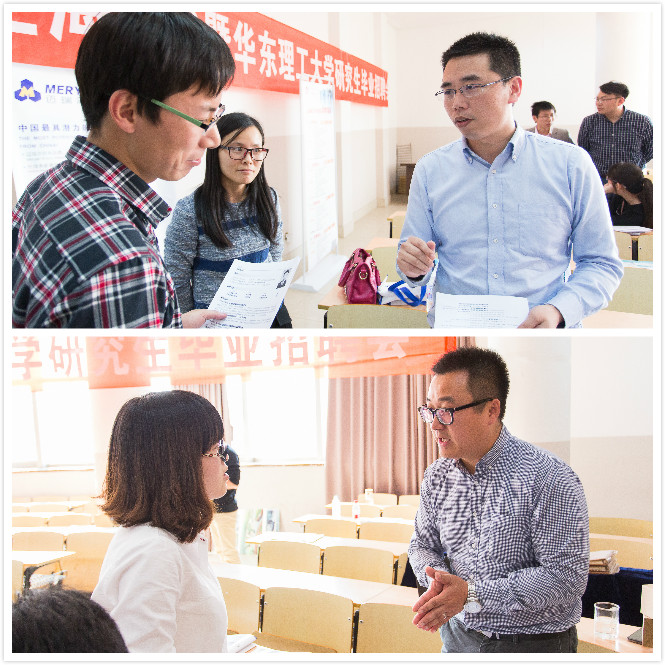 、医药等研发机构提供电子化数据采集服务,帮助用户积累科研大数据,她从公司发展历程、企业服务、典型用户、10亿科研支持计划、合作伙伴和权威认可等六个方面对鹰谷公司概况作了说明。她表示鹰谷虽然年轻,但竞争力强、前景美好,希望同学们积极主动应聘公司的销售经理或产品经理岗位。接着,上海毕得医药科技有限公司研发副总裁张锐豪先生对企业发展情况进行了概述,并以图片的形式展示了公司良好的工作环境和员工丰富多彩的业余活动,殷切希望华理学生踊跃投入到毕得的大家庭中来。随后,上海西陇生化科技有限公司副总经理阿庆德先生从公司的平台服务、营销团队、品牌(及代理品牌)等方面对公司做了简介,同时着重介绍了隶属于公司的毛博士实验室在行业内30年来的成就,其为化学、生化、医药和材料科学等领域的实验室研发及生产提供了集成化解决方案。会上,萨恩化学技术(上海)有限公司和上海迈瑞尔化学技术有限公司相关负责人分别对其企业作了介绍和对所需招聘人才作了说明。最后,上海阿拉丁生化科技股份有限公司营销总监费志锋压轴出场,以诙谐幽默的语言风格介绍了公司情况作并与在场人员亲切互动。他在发言最后强调了公司人力资源管理理念“量才使用、公平竞争、绩效为先”的重要性,并对企业2016年招聘薪酬标准作了说明。各企业宣讲结束后,研究生与企业进行了面对面交流、面试。