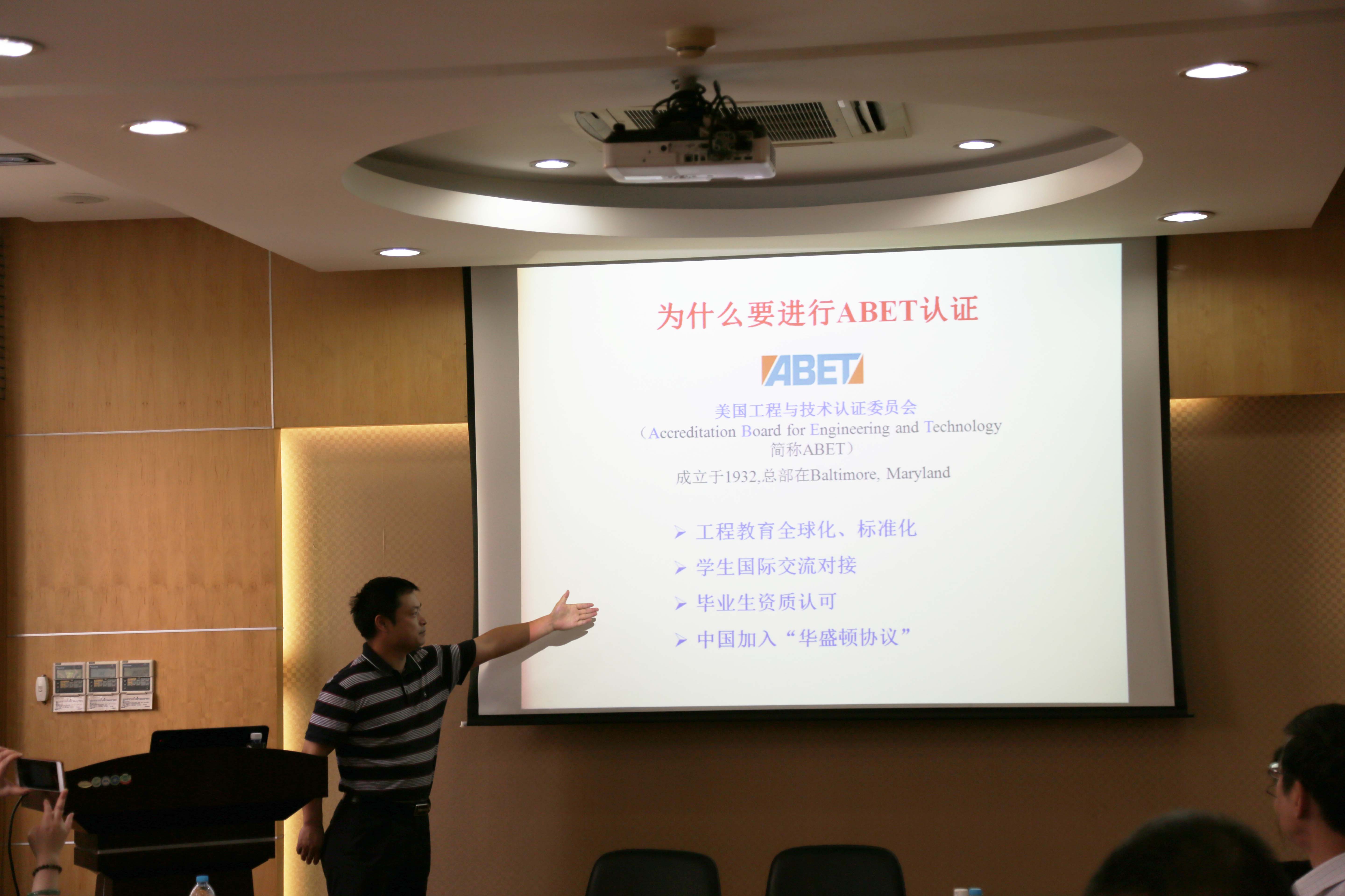 郭旭虹教授作了题为“国际认证的过程和体会”的报告。与会人员就国际认证、实验室建设和安全教育做了深入的交流。