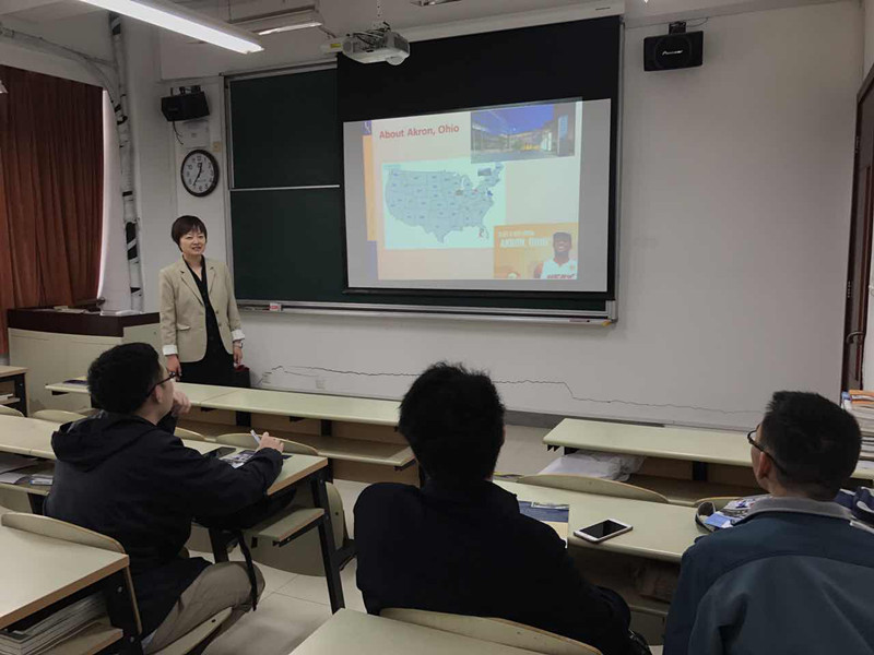 ,在奉贤校区为本科生做了一场关于阿克伦大学交流项目的宣讲会,并于宣讲会后与第一会所