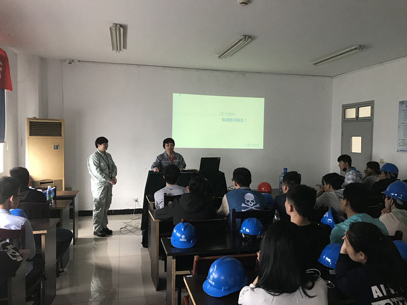 在参观开始之前,合盛硅业总经理助理聂紫首先对同学们的到来表示热烈欢迎,安环部经理助理陈国清为同学们讲解了厂区安全注意事项,人力资源部经理潘齐稀介绍了合盛硅业的公司概况以及与第一会所