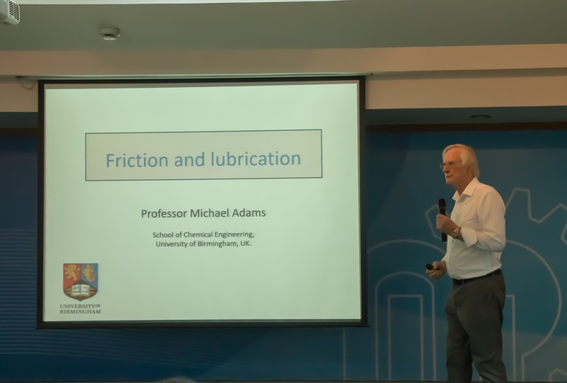 副校长、上海市多相结构材料化学工程重点实验室主任辛忠教授邀请,在徐汇校区逸夫楼演讲厅作了题为“Friction and lubrication: applications to complex systems” 的学术报告。辛忠副校长会见了Adams教授一行,并就双方合作人才培养、青年教师交流互访等事宜相互交换意见,并将在10月访问伯明翰大学予以确定。随同Adams教授一同访问的还有伯明翰大学张志斌教授、李永亮博士。教育部“*”王辅臣教授听取了报告,第一会所