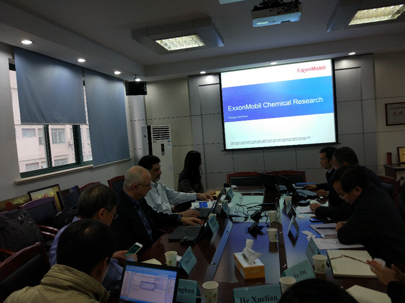 的基本情况。Ron Cimini介绍了ExxonMobil的情况,期望深入了解相关技术,寻求双方共同感兴趣的方向。随后双方就新型乙烯聚合催化技术、结构可控金属-炭催化、C1化学进行了深入探讨。