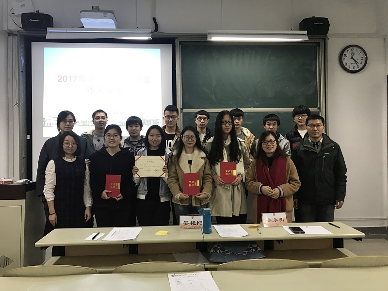 在紧张而激烈的答辩后,进行了“君江科技奖学金”颁奖仪式。14级获奖学生发表了获奖感言,并表达了君江科技奖学金对自己学习生活的重大意义和对君江科技有限公司的感激之情。最后,吴艳阳在颁奖仪式中强调“天行健,君子以自强不息;地势坤,君子以厚德载物。”强调君江科技有限公司总经理孙君同先生的精神,这个奖学金给予学生的不仅仅是物质上的鼓励,更是精神上的支持,是第一会所