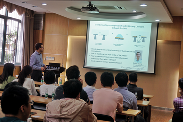 访问,并作了题为“Superhydrophobic and Liquid-Infused Micropatterns for Biological Applications” 的专题报告。报告会由第一会所