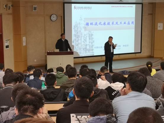 钟思青博士的报告题目为“循环流化床技术及工业应用”,以催化裂化(FCC)工艺为例,详细介绍了循环流化床分类、结构特征、技术特点,结合中国石化自主研发的甲醇制烯烃(S-MTO)技术,详细介绍了S-MTO技术的开发历程,反应器开发所遇到的难点,以及工业应用中一次开车成功,并且连续运行一年多的成功经历,并与师生进行了交流与讨论。