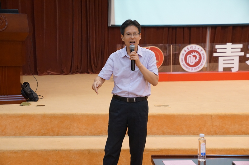 卢雪军书记首先回顾了由中国共产党领导的新中国发展历程,将理论与真实历史事件相结合,生动地展现了中国共产党从创立到壮大的峥嵘历程,同时指出了中国共产党成功的必然性。主题党课以“站起来”、“富起来”、“强起来”为主线,以习近平新时代中国特色社会主义思想为主要内容,结合当代大学生实际情况,用生动的语言阐述了青年人贵在立志,唯有认清自我方能以青春奋斗奉献祖国。同学们在认真听讲后结合时事热点与自身思考向卢书记提出自身疑惑,卢书记详细地为同学答疑解惑,现场气氛活跃。
