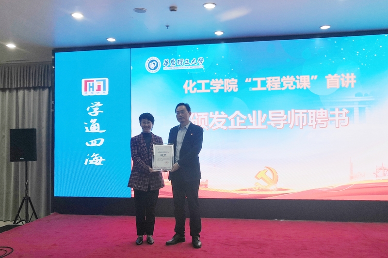 授聘仪式后,孙秋新董事长为全体师生做《石化“智造”谋发展,一带“油路”新征程——“一带一路”倡议背景下石油基新材料制造的思考》主题党课。孙秋新结合国家“一带一路”倡议背景下石化行业的发展趋势,为同学们生动阐释了中国在国际石化能源产业中价值输出、技术输出、文化输出辐射作用,鼓励同学们热爱专业学习,立足岗位,将自身科研聚焦行业发展的趋势,为石化行业发展贡献自己的力量。在场师生认真聆听,讲座气氛空前热烈。