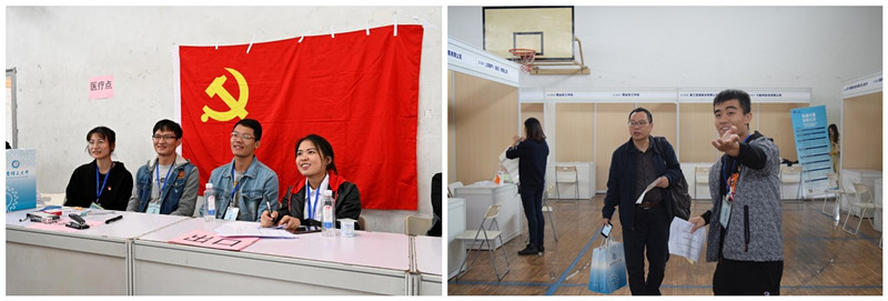 为期两天的招聘会志愿活动中,同志们合理分工、协同工作,从到场招聘单位的接待和位置安排,到幕后的整理工作,引导同学。构建党员服务点,为应聘学生和企业提供贴心服务。许多2020届的毕业生正好是课题组里的师兄师姐,志愿服务也是对他们最真诚的谢意。两天参会求职应聘者达二千人之多,两支部齐力维持了招聘会现场有条不紊的秩序,为招聘会顺利举行奠定了坚实的基础。