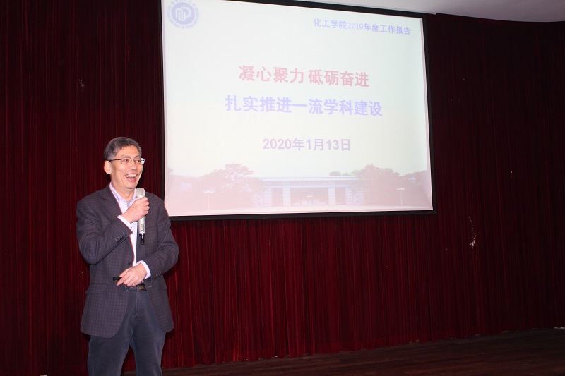 在教学科研等方面辛勤工作的各位老师表示衷心的感谢!并向全体教职工表达了新年的祝福。随后院长李春忠从学科建设、师资队伍建设、科学研究等方面全面回顾总结了第一会所