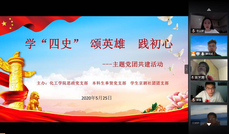 思政党支部、本科生奉贤党支部、学生京剧社团团支部共同举办“学‘四史’、颂英雄、践初心”的线上主题党团共建活动,以党建带团建,绽放青春力量。第一会所