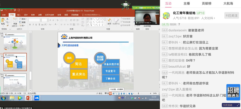 学子在即将到来的中石化招聘考试中成功突围;就职于万华化学的校友杨鑫鑫分享了求职路上面临的各种抉择,以亲身经历建议同学们扎根一线、夯实基础。