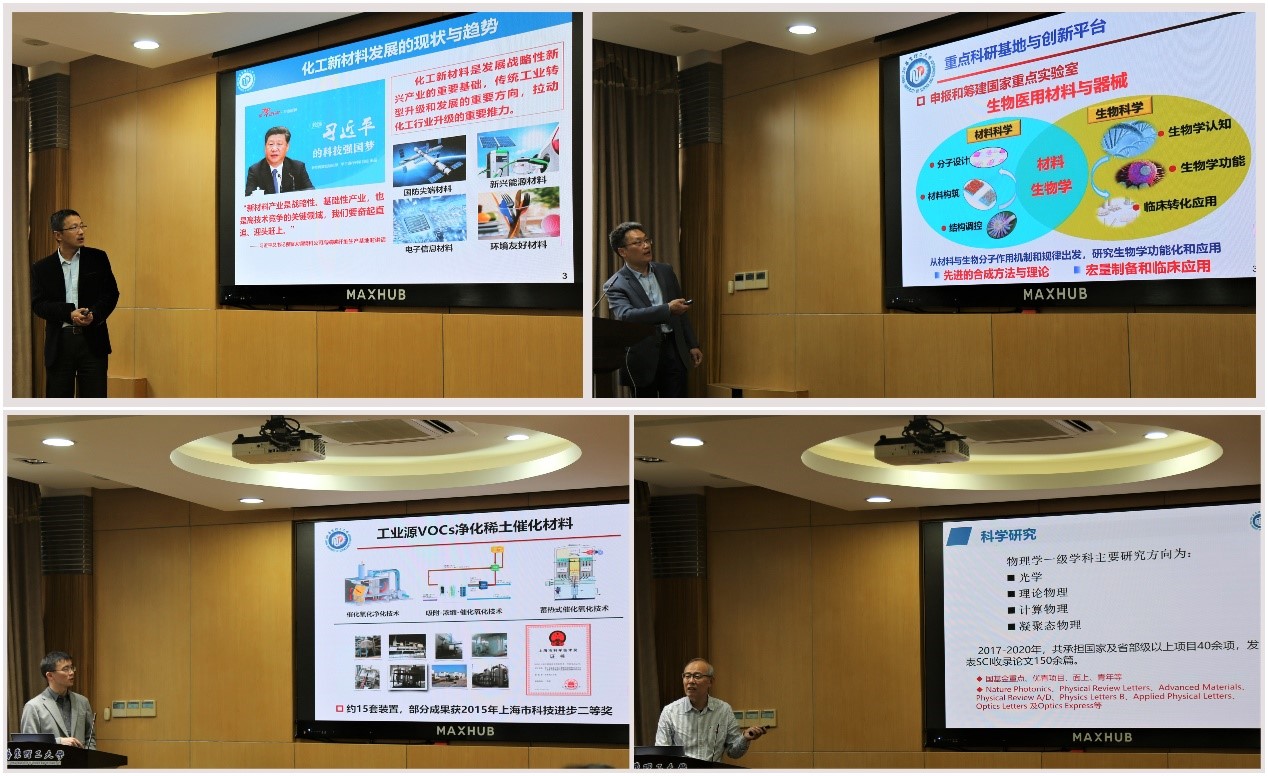 青年教师代表龙东辉教授、奚桢浩教授结合自身研究领域,分别作了《军工领域新材料发展之浅见》和《高性能聚合物新材料的发展趋势》的学术报告。报告结束后,与会老师就第一会所