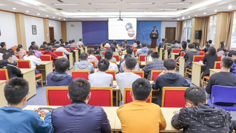 党委书记朱学栋、副院长刘殿华、辅导员、全体研究生党员和入党积极分子参加报告会。会议由朱学栋主持。