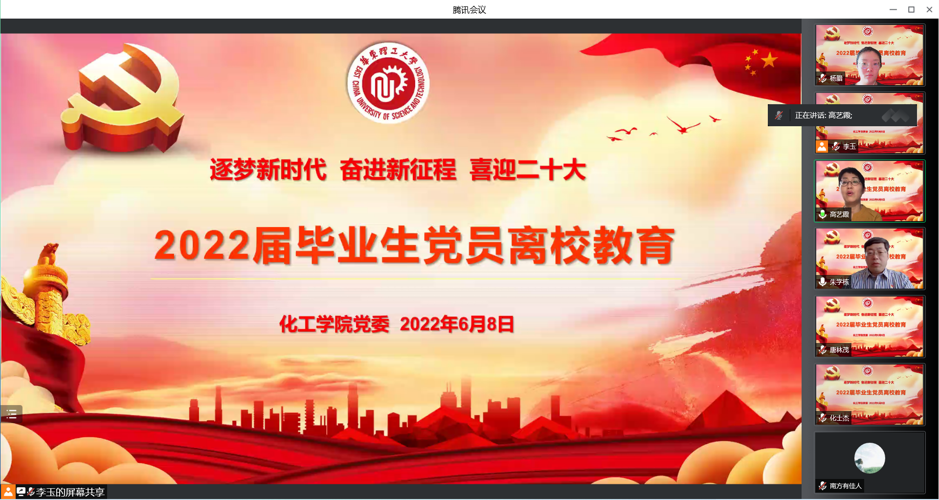 党委书记朱学栋、副书记高艺霞、组织员李玉、辅导员杨腊和曹妙以及全体毕业生党员参加活动。活动由高艺霞主持。