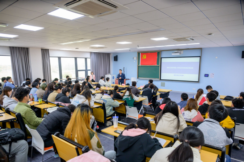 师生党员、入党积极分子带来“新时代推动构建人类命运共同体的应有自觉”主题党课。星火社全体骨干、本科生奉贤党支部全体党员、80余名入党积极分子参加活动,活动由辅导员曹妙主持。