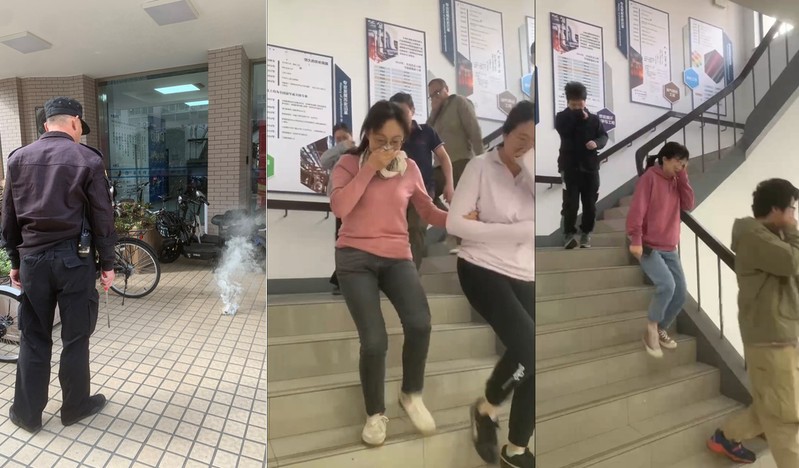 的师生普及了基础消防安全知识。下午两点,段凯洋宣布消防应急疏散演练正式开始,工作人员依照演习预案分别在实验12楼南侧和实验16楼南侧门口点燃烟饼,开始模拟火灾发生的场景,两栋实验楼也同时响起了消防报警铃声及语音提示。实验12楼及实验16楼的全体师生在34位楼层引导员的有序引导下,捂住口鼻,快速且有秩序地撤离到了安全区域。最后,段凯洋宣布2023第一会所