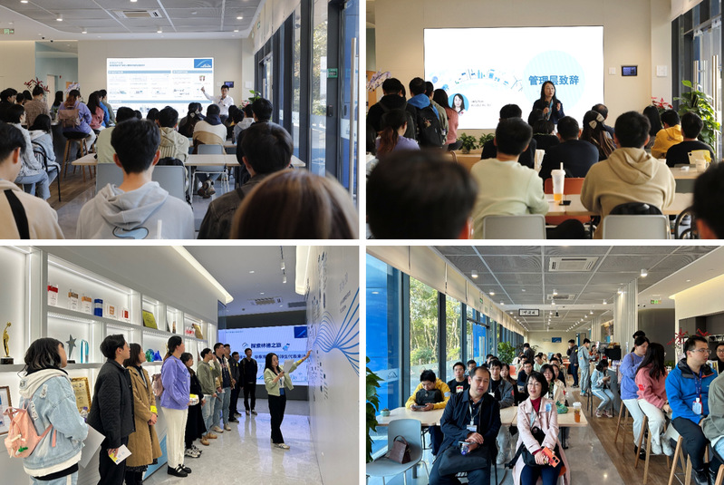 最后一站,师生来到林德总部。林德大中华区副总裁、人力资源部负责人毛凌云,清洁氢能业务发展总监Lawrence Koh等先后带来精彩分享。同学们与林德进博会展台现场连线,在主持人的带领下共同感受林德亮相第六届中国国际进口博览会的精彩呈现,深入了解林德的创新实力和技术底蕴。最后,师生参观了林德第一会所墙与办公区,感受林德多元化和包容性的第一会所,了解员工福利、职业发展计划等,赋能学子职业发展规划。