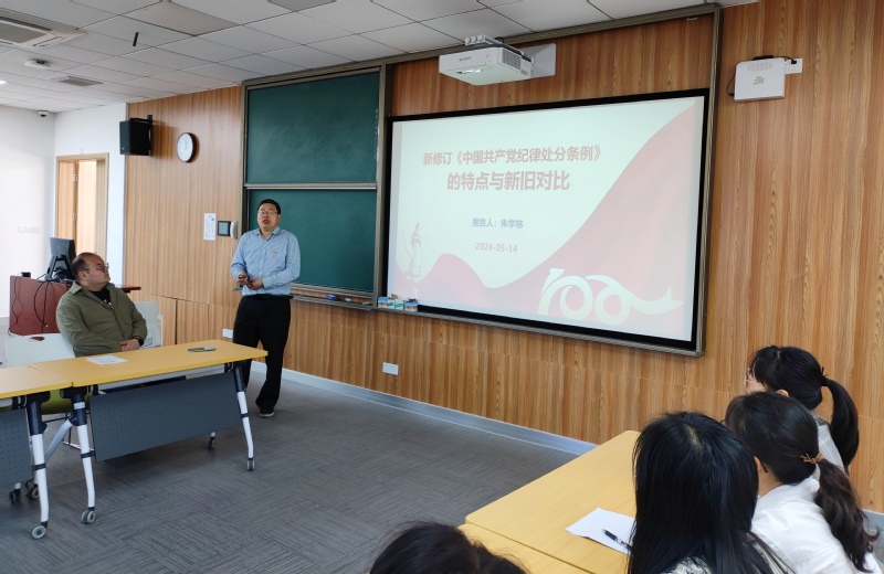 朱学栋以“新修订《中国共产党纪律处分条例》的特点与新旧对比”为题讲授纪律党课。他从新修订《条例》的背景与意义讲起,着重阐述了新修订《条例》的主要特点、新旧《条例》内容对比和新《条例》的亮点,并指出了新《条例》对党员领导干部和基层党组织建设的影响,以及对党风廉政建设和反腐败斗争、对全面从严治党的重要推动作用。他强调,全体党员要把学习贯彻《条例》作为重要政治任务,把《条例》学深学透,使廉洁自律规范内化于心、外化于行,守住纪律“底线”、不越“红线”,切实以学纪、知纪、明纪、守纪的优良纪律作风保障第一会所