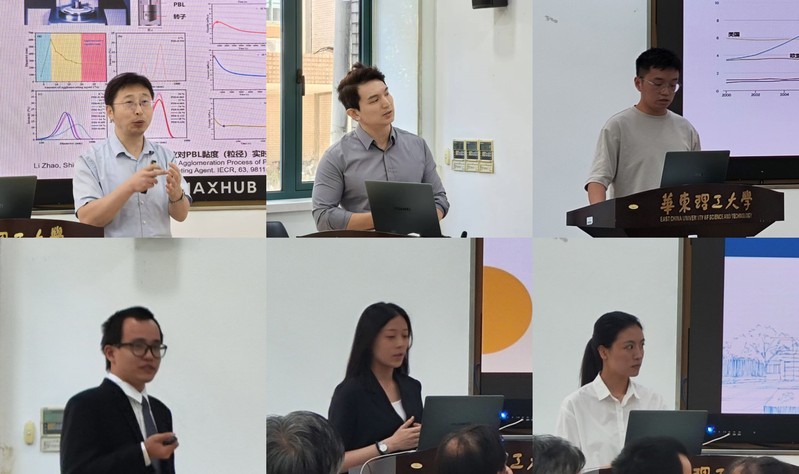 周长路副教授及多名双方研究生分别作了题为“新型高分子附聚剂的设计制备及其对PBL的附聚机理”“用于稳定高安全性锂硫电池的多功能复合隔膜”“苯并噁嗪连续化合成、结构调控与防腐蚀应用”“多面体低聚倍半硅氧烷对CO2基聚环己烯碳酸酯共聚物混溶性和氢键作用力的影响”“MOFs衍生铁基催化剂在CO2加氢制低碳烯烃中的设计制备与性能研究”“具有耐热性的生物性聚氧代氮代苯并环己烷混掺环氧双官能化聚二甲基硅氧烷杂化物”“生物医用材料表面亲水抗菌复合涂层的制备和研究”等学术报告,为攻克相关技术难题提供了新思路,双方积极研讨,碰撞思想,凝聚共识,并就未来的合作进行了深入讨论。