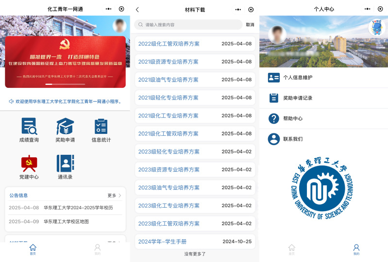 该小程序以“智慧学工”为核心定位,打破传统学生工作的物理边界,围绕学生成长全周期需求,构建起涵盖个人信息、信息公开与材料下载、成绩查询和奖助申请、事务信息统计、党员发展、通讯录等六大功能模块的数字化矩阵,实现精准赋能。