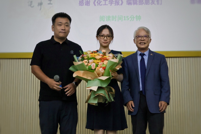 青年如何规划自身成长”“如何培养科研思维”等关切的问题与朱教授互动交流。每当朱教授做出精辟解答时,台下便有阵阵会意的点头和激烈的掌声。随后,2025级新生代表贾悦桐向朱世平教授献花致敬,全体师生代表与嘉宾合影留念。